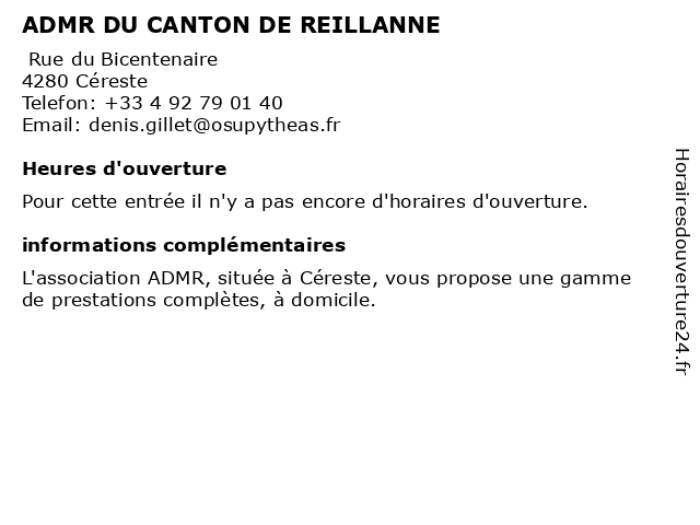 | Appeler ADMR DU CANTON DE REILLANNE | |