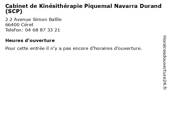 | Appeler Cabinet de Kinésithérapie Piquemal Navarra Durand (SCP) | |