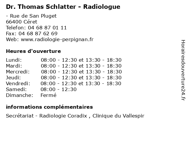 | Jeudi | 08:00-12:30 et 13:30-18:30 |