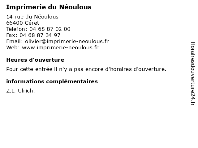 1 Hôtel-Restaurant Le Néoulous (Distance: 3,59 km) - Route de Céret, 66160 Le Boulou bar, bistrot, café, chambre, hotel, hôtel, le, néoulous, restaurant, restauration 2 Click'N 3D - Imprimerie (Distance: 19,11 km) 8 impasse de l'Industrie, 66180 Villeneuve-de-la-Raho 3d, click'n, couleurs, enseignes, entreprise, impression, imprimerie, numerique, offset, projet 3 Com'Vermeille - Imprimerie (Distance: 20,43 km) 36 rue Arthur Rimbaud, 66200 Elne com'vermeille, couleurs, enseignes, entreprise, impression, imprimerie, numerique, offset, projet 4 COM VERMEILLE (Distance: 22,75 km) 16 Rue du Paradis, 66200 Alénya com, communication, création enseigne, création graphique, création logo, flyer, impression textile, imprimerie, imprimerie grand format, objet publicitaire, vermeille 5 Sublim ID (Distance: 23,44 km) 9 Quai de Hanovre, 66000 Perpignan brochure, catalogue, communication, digital, dépliant, id, imprimerie, livres, magasine, papeterie, sublim, sublimid 6 Direct Graphic (Distance: 23,97 km) 7 rue du Château, 66000 Perpignan couleurs, direct, enseignes, entreprise, graphic, impression, imprimerie, numerique, offset, projet |