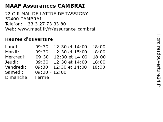 1 Matmut Assurances (Distance: 0,05 km) 6 Rue Du Maréchal De Lattre De Tassigny, 59400 Cambrai agence d'assurance de biens, assurances, expert en sinistres, matmut, organisme d'assurance animaux de compagnie, organisme d'assurance auto, organisme d'assurance bateau, organisme d'assurance moto, organisme d'assurance-habitation, organisme d'assurance-vie, service d'assurance professionnelle 2 MMA Assurances CAMBRAI (Distance: 0,07 km) 8 Rue du Général de Gaulle, 59400 Cambrai assurance au tiers, assurance auto, assurance auto au tiers, assurance auto pas cher, assurance auto tous risques, assurance habitation, assurance habitation pas cher, assurance local, assurance multirisque, assurance professionnelle, assurance santé, assurance tous risques, assurance voiture, assurances, cambrai, flotte, garantie décennale, mma, mutuelle, mutuelle sénior, rc pro, responsabilité civile 3 GMF Assurances (Distance: 0,09 km) 4 Rue du Général de Gaulle, 59400 Cambrai assurance auto, assurance habitation, assurance santé, assurances, crédit, devis en ligne, gmf, prise de rendez-vous, prévoyance, épargne 4 DRIVE ASSURANCES (Distance: 0,22 km) 3 Rue Des Rôtisseurs, 59400 Cambrai assurances, drive, organisme d'assurance-maladie 5 Assurances - Mon Assurance Facile - Cambrai (Distance: 0,25 km) 3 Place du Maréchal Leclerc, 59400 Cambrai assurance, assurances, cambrai, facile, mon 6 Gan Assurances (Distance: 0,26 km) 25 rue des Liniers, 59400 Cambrai agence, assurances, courtier, gan, protection, sinistres  |