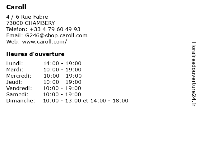 | Dimanche | 10:00-13:00 et 14:00-18:00 |