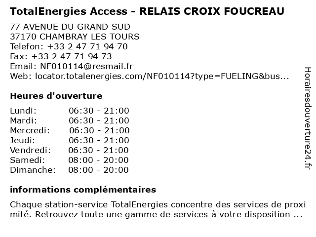 Termes de recherche pour TotalEnergies Access - RELAIS CROIX FOUCREAU:relais, croix, access, foucreau, totalenergies, borne de recharge, charging station, recharger ma voiture |