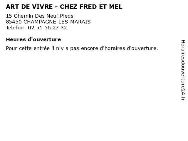 Appeler ART DE VIVRE - CHEZ FRED ET MEL | |