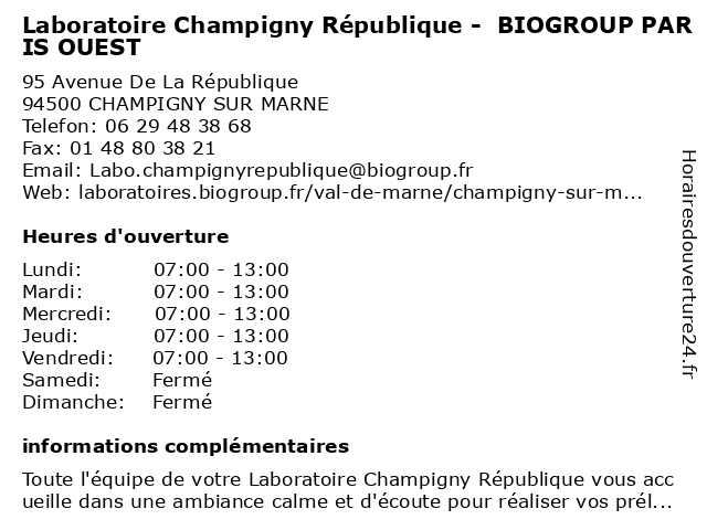 Termes de recherche pour Laboratoire Champigny République - BIOGROUP PARIS OUEST:champigny, paris, laboratoire, republique, ouest, biogroup, dépistages, laboratoire de diagnostic |