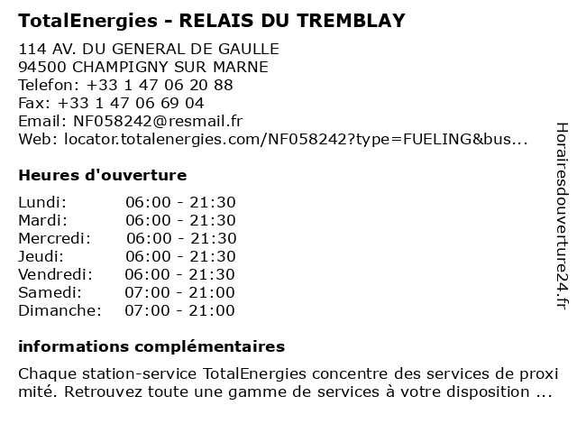 Termes de recherche pour TotalEnergies - RELAIS DU TREMBLAY:relais, du, total, tremblay, gas station, station service, tankstelle, totalenergies |