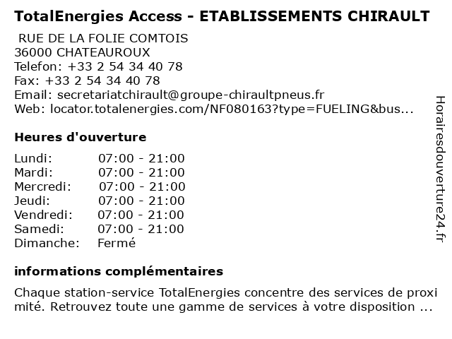 Termes de recherche pour TotalEnergies Access - ETABLISSEMENTS CHIRAULT:access, total, etablissements, gas station, station service, chirault, tankstelle, totalenergies |