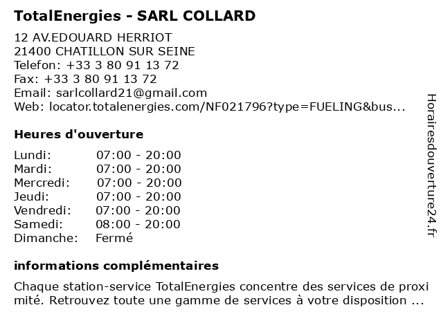 Termes de recherche pour TotalEnergies - SARL COLLARD:sarl, total, collard, gas station, station service, tankstelle, totalenergies |