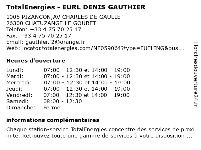 Termes de recherche pour TotalEnergies - EURL DENIS GAUTHIER:denis, total, eurl, gauthier, gas station, station service, tankstelle, totalenergies |