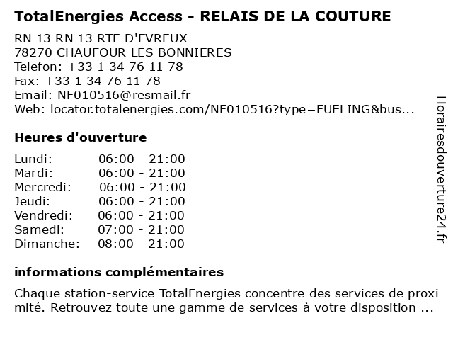 Termes de recherche pour TotalEnergies Access - RELAIS DE LA COUTURE:relais, la, de, access, couture, total, gas station, station service, tankstelle, totalenergies |