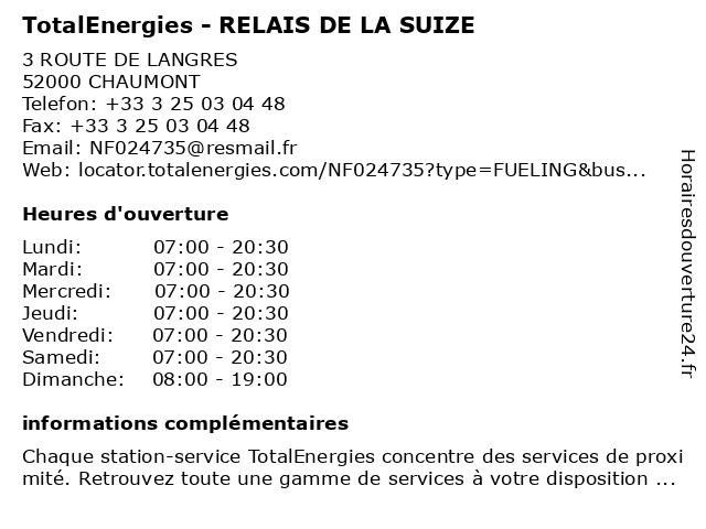 Termes de recherche pour TotalEnergies - RELAIS DE LA SUIZE:relais, la, de, total, suize, gas station, station service, tankstelle, totalenergies |