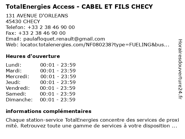 Termes de recherche pour TotalEnergies Access - CABEL ET FILS CHECY:et, access, fils, total, chécy, gas station, station service, cabel, tankstelle, totalenergies |