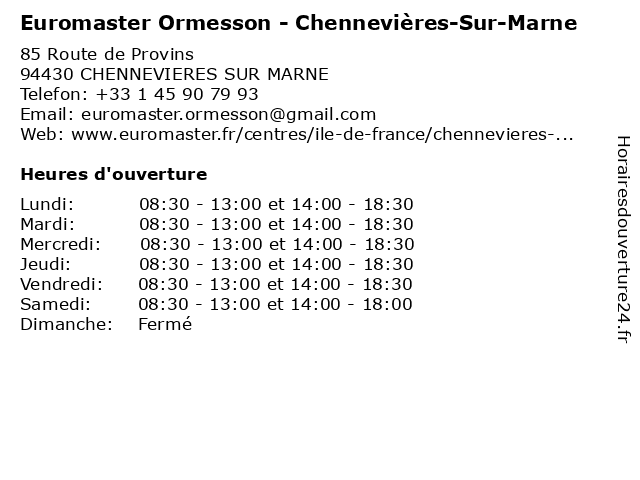 | Samedi | 08:30-13:00 et 14:00-18:00 |