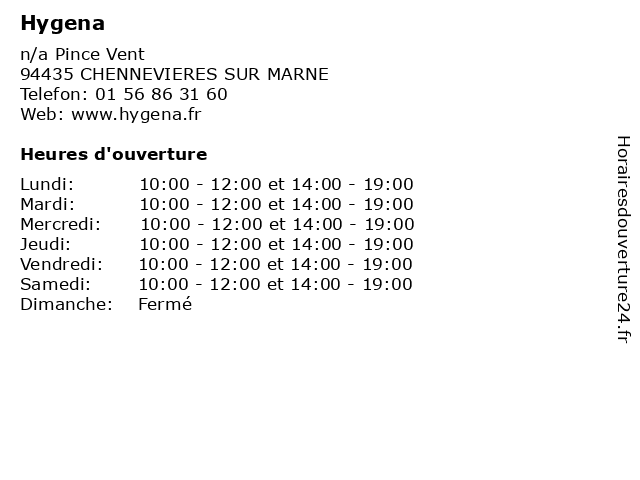 | Mercredi | 10:00-12:00 et 14:00-19:00 |