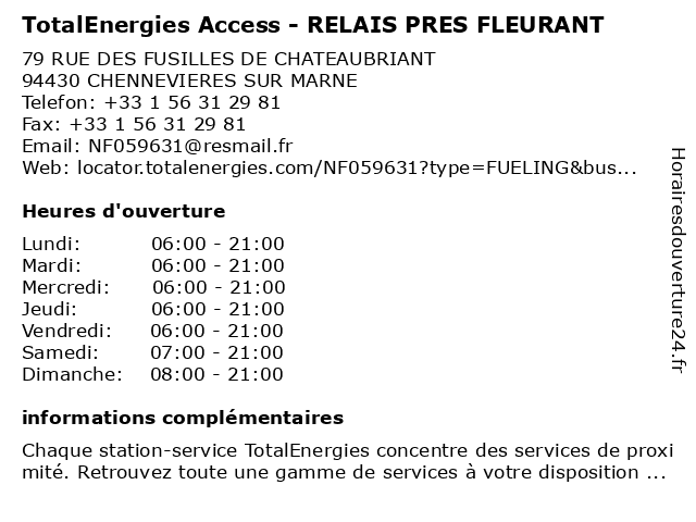 Termes de recherche pour TotalEnergies Access - RELAIS PRES FLEURANT:relais, pres, access, total, gas station, station service, fleurant, tankstelle, totalenergies |