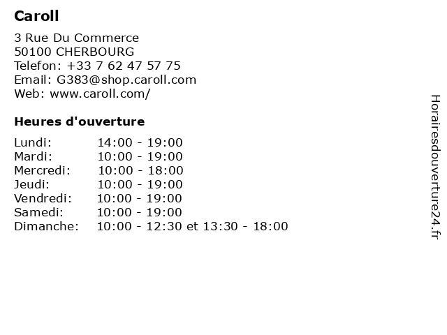 | Dimanche | 10:00-12:30 et 13:30-18:00 |