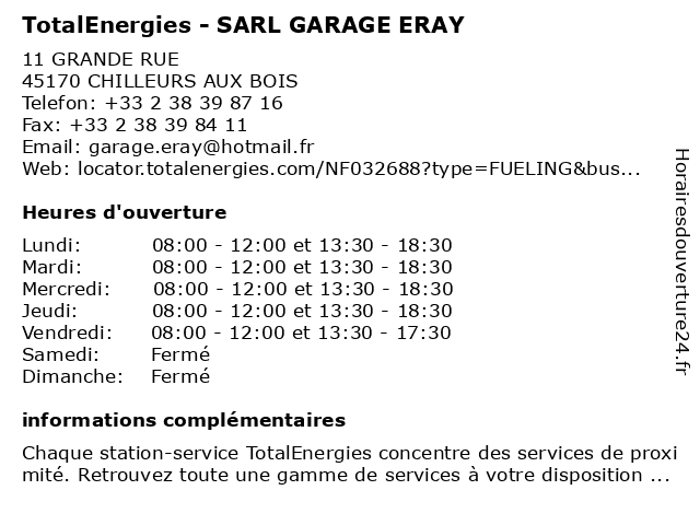 Termes de recherche pour TotalEnergies - SARL GARAGE ERAY:garage, sarl, total, gas station, station service, eray, tankstelle, totalenergies |