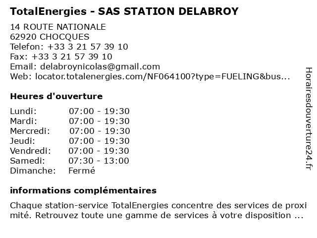 Termes de recherche pour TotalEnergies - SAS STATION DELABROY:sas, station, total, gas station, station service, delabroy, tankstelle, totalenergies |