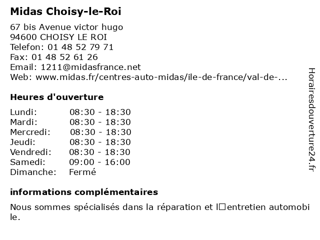 Termes de recherche pour Midas Choisy-le-Roi:le, choisy, roi, midas, atelier de réparation automobile, service de climatisation automobile, magasin de pièces automobiles |