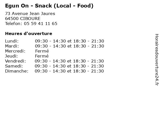 | Dimanche | 09:30-14:30 et 18:30-21:30 |