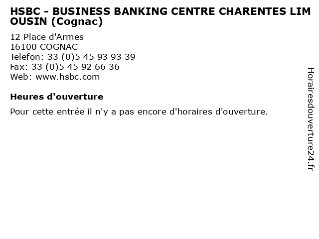 | Appeler HSBC - BUSINESS BANKING CENTRE CHARENTES LIMOUSIN (Cognac) | |