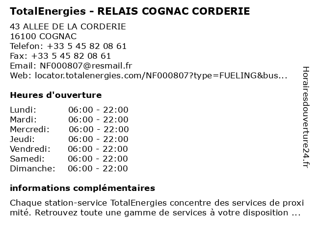 Termes de recherche pour TotalEnergies - RELAIS COGNAC CORDERIE:relais, cognac, total, corderie, gas station, station service, tankstelle, totalenergies |