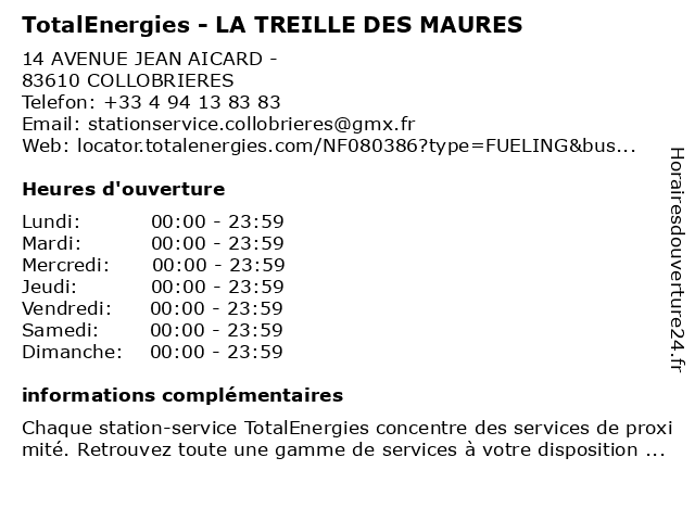 Termes de recherche pour TotalEnergies - LA TREILLE DES MAURES:la, des, total, treille, maures, gas station, station service, tankstelle, totalenergies |