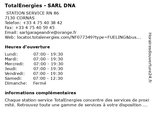 Termes de recherche pour TotalEnergies - SARL DNA:sarl, total, gas station, station service, dna, tankstelle, totalenergies |