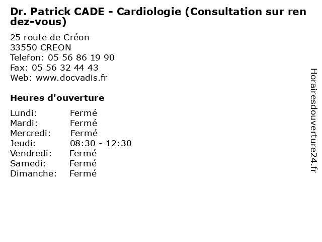 Termes de recherche pour Dr. Patrick CADE - Cardiologie (Consultation sur rendez-vous):sur, patrick, vous, santé, rendez, docteur, dr., médecins, consultation, cardiologie, cade |