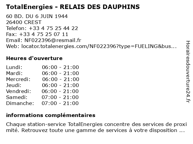 Termes de recherche pour TotalEnergies - RELAIS DES DAUPHINS:relais, des, total, dauphins, gas station, station service, tankstelle, totalenergies |