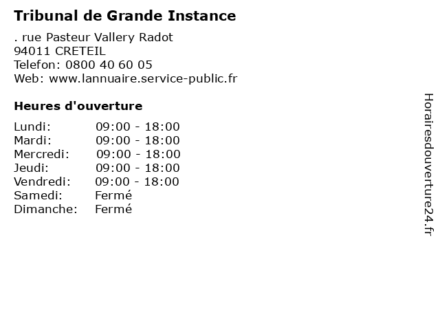 1 Tribunal de Grande Instance (Distance: 10,26 km) 4 boulevard du Palais, 75055 Paris administration, assoc, de, grande, instance, services, services publics, tribunal 2 Tribunal de Grande Instance (Distance: 17,82 km) 9 rue des Mazières, 91012 EVRY administration, assoc, de, grande, instance, services, services publics, tribunal 3 Cafétéria La Grande (Distance: 0,14 km) 61 Avenue Général de Gaulle, 94000 Créteil cafétéria, campus, grande, la, restaurant, universitaire 4 La Grande Récré (Distance: 5,38 km) 4 Place de L' Europe, 94220 Charenton-le-Pont alimentation, beauté & santé, culture & loisirs, enfants, grande, high-tech, la, maison & déco, mode, restaurants, récré 5 Parking Zenpark (Tribunal d'Instance) (Distance: 8,17 km) 40 Rue Franklin, 93100 Montreuil d'instance, parking, stationnement, tribunal, zenpark 6 La Grande Récré (Distance: 11,46 km) . Rue Monthéty, 77340 Pontault-Combault alimentation, beauté & sante, culture & loisirs, enfants, grande, high-tech, la, maison & déco, mode, restaurants, récré |