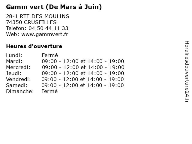 | Mardi | 09:00-12:00 et 14:00-19:00 |