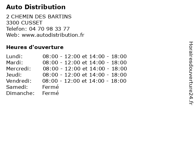 1 Citroën - Sas Dallois Vichy Distribution (Horaires Généraux) (Distance: 0,52 km) 90 Avenue Gilbert Roux, 03300 Cusset citroën, dallois, distribution, generaux, généraux, horaires, sas, services, vichy, véhicules 2 Citroën - Sas Dallois Vichy Distribution (Pièce de Rechange) (Distance: 0,52 km) 90 Avenue Gilbert Roux, 03300 Cusset citroën, dallois, de, distribution, piece, pièce, rechange, sas, services, vichy, véhicules 3 Croc'Bio Biovergne Distribution (Distance: 0,55 km) 32 Rue de Romainville, 03300 Cusset biovergne, croc'bio, distribution 4 Lagarde Distribution (Distance: 1,66 km) 22 Boulevard Jean Lafaure, 03300 Cusset distribution, lagarde 5 France Distribution Biomasse (Distance: 1,86 km) 26 Rue du Maréchal Foch, 03200 Vichy biomasse, distribution, france, magasin, magasin de poêles, maison du poêle, poêle, poêles, vente 6 MEUBLES STORY JD DISTRIBUTION ADHÉRENT (Distance: 3,44 km) Rue de la Ronzière, 03110 Charmeil adhÉrent, distribution, jd, meubles, story |