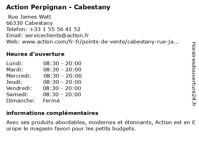 1 3 Action (Distance: 0,14 km) - Rue James Watt, 66330 Cabestany action, alimentaire, discount, décorations, magasins, produits ménagers 5 Porcelanosa Associate Perpignan (Distance: 0,27 km) 15-17 Rue Michel Carré, 66330 Cabestany associate, perpignan, porcelanosa 6 Appel Médical - Perpignan (Distance: 0,58 km) 4 Rue Albert Caquot, 66330 Cabestany appel, conseils en recrutement, intérim médical, médical, offres d'emploi, perpignan, recrutement médical |