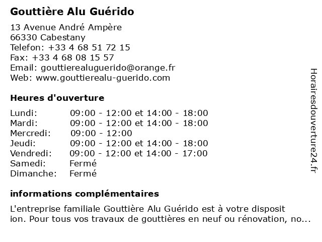| Lundi | 09:00-12:00 et 14:00-18:00 |