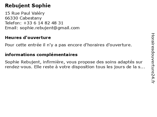 Connaissez-vous Rebujent Sophie? Partagez votre avis avec les autres visiteurs intéressés ici.