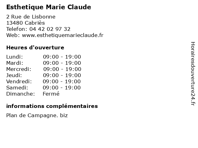 Horaires d'ouverture |