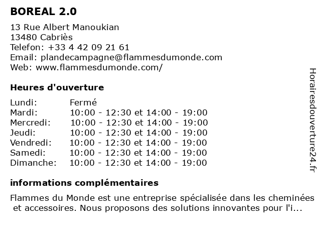 | Mercredi | 10:00-12:30 et 14:00-19:00 |