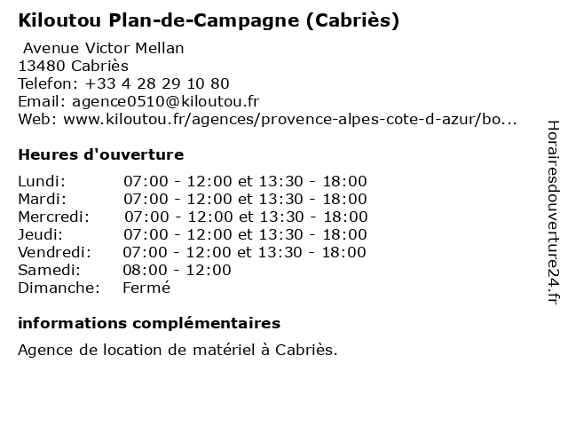 | Lundi | 07:00-12:00 et 13:30-18:00 |