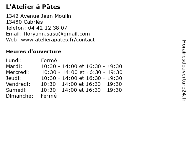 | Mardi | 10:30-14:00 et 16:30-19:30 |