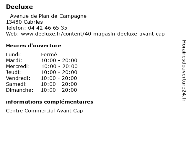 1 Deeluxe 74 (Distance: 16,56 km) . Tarverse de la Montre, 13011 Marseille 74, beaute, cafe, chaussures, deeluxe, enfants, hommes, lingerie, mode femmes, restaurant, sport 2 Les Petites Bombes - LPB (Distance: 0,41 km) 19 rue d'Athenes, 13480 Cabriès accessoires, bombes, femmes, habillement, hommes, les, lpb, mode, petites, pret-à-porter, vetements 3 Kiabi (Distance: 0,41 km) n/a Plan de Campagne, 13480 Cabriès accessoires, chaussures, discount, habillement, kiabi, mode, petits prix, pret-a-porter, vetements 4 Olly Gan (Distance: 0,58 km) s/n Chemin de la Grande Campagne, 13480 Cabriès accessoires, femmes, gan, habillement, hommes, mode, olly, pret-à-porter, vetements 5 Le Temps des Cerises (Distance: 0,58 km) s/n Chemin de la Grande Campagne, 13480 Cabriès accessoires, cerises, des, habillement, le, mode, pret à porter, temps, vêtements 6 Christine Laure (Distance: 1,07 km) . Plan de Campagne, 13170 Les Pennes Mirabeau accessoires, chaussures, christine, habillement, laure, mode, pret-a-porter, vetements |
