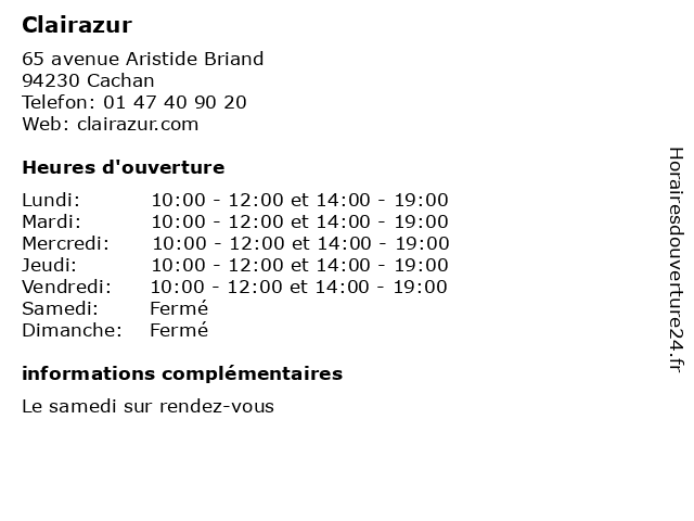 | Vendredi | 10:00-12:00 et 14:00-19:00 |