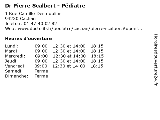 | Mercredi | 09:00-12:30 et 14:00-18:15 |