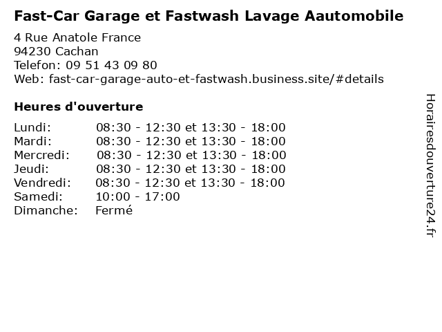 | Lundi | 08:30-12:30 et 13:30-18:00 |
