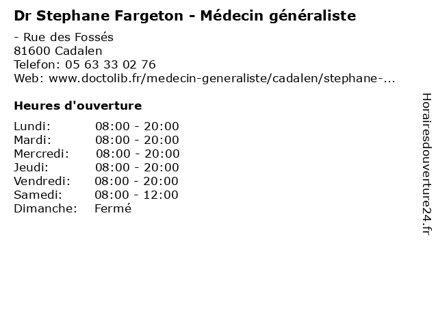 | Lundi | 08:00-20:00 |