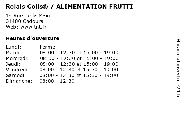 Termes de recherche pour Relais Colis® / ALIMENTATION FRUTTI:relais, alimentation, colis, colis®, services postaux et de livraison, frutti |