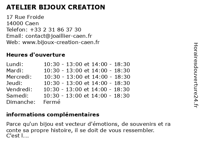 | Samedi | 10:30-13:00 et 14:00-18:30 |