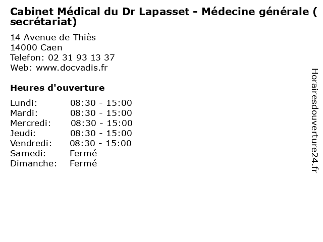 | Lundi | 08:30-15:00 |