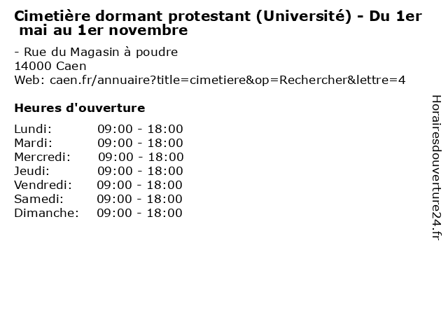 1 Cimetière dormant protestant (Université) - Du 2 novembre au 30 avril (Distance: 0,00 km) - Rue du Magasin à poudre, 14000 Caen 30, arbre, au, avril, cimetiere, cimetière, dormant, du, espace vert, forêt, funeraire, jardin, loisirs, nature, novembre, parc, prairie, protestant, square, université 3 Garage de l'Université - Renault (Distance: 0,18 km) 18 Rue Bosnières, 14000 Caen atelier, automobile, concessionnaire, de, entretien, garage, l'université, renault, réparation, vente 4 Crèche de l'Université Campus 1 (Distance: 0,27 km) n/a Esplanade, 14000 Caen campus, caregivers houses, child care, crèche, de, family home, home care, kindergartens, l'université, micro-nurseries, parental home 5 Musée de Normandie (1er Juin au 31 Octobre) (Distance: 0,31 km) - Le Château, 14000 Caen 1er, 31, au, de, exposition, juin, musée, normandie, octobre, visite 6 Crèche People and Baby - Cpe Université de Caen / Campus 1 (Distance: 0,35 km) - Esplanade de la Paix, 14032 Caen and, baby, caen, campus, cpe, crèche, crèches, de, garde d'enfants, les services parentalité, people, projet social, projet éducatif, université |