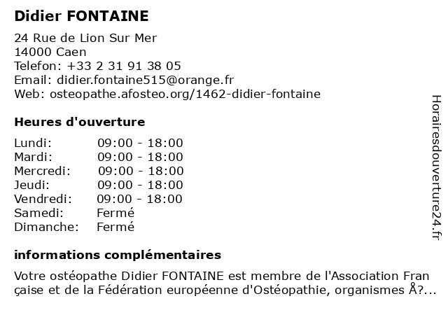 | Samedi | Fermé |